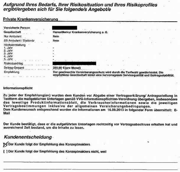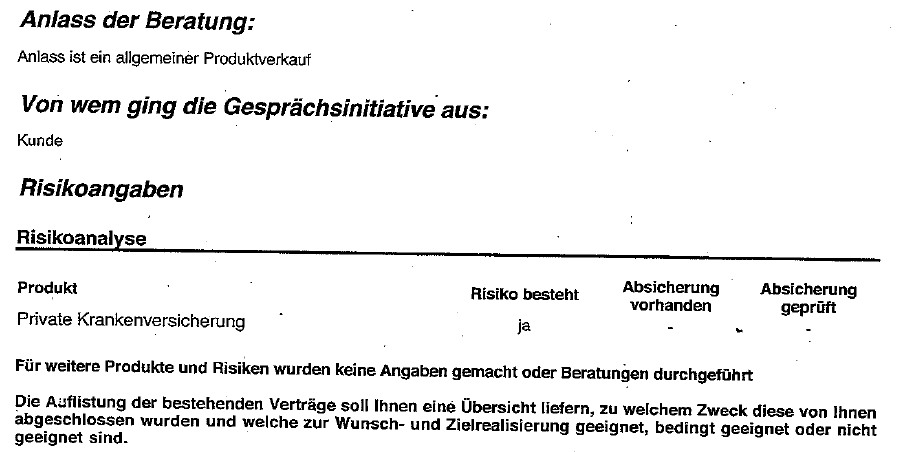 Das Versicherungsvertragsgesetz ist klar und deutlich formuliert. Die Beratung des Versicherungsnehmers (VVG § 6 , § 61) beschreibt die Vorgehensweise – für die Beratung und auch die Dokumentation der Beratung.