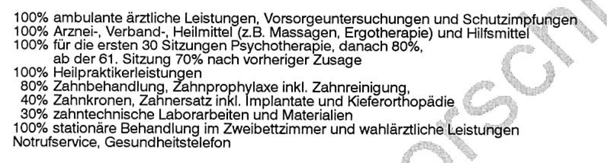 - der Hilfsmittelkatalog ist nicht offen und damit ist die Bezeichnung 100 % für Hilfsmittel irreführend, meine ich. Eine geschlossene Liste mit nur einigen wenigen Hilfsmitteln findet sich im Versicherungsschutz.