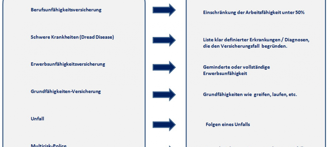 Es ist explizit darauf zu beachten, dass wir in dem Bereich der Lebensversicherung das Risiko Berufsunfähigkeit absichern können, die Kombination zur Pflege aber in dem Bereich der Krankenversicherung zu finden ist. Allein der Sachverhalt lässt es sehr spannend werden, zu erfahren wie die vertraglichen Formulierung dieser beiden, in der Vergangenheit mit unterschiedlichen juristischen Termini ausgestatteten Bereiche, kombinieren.