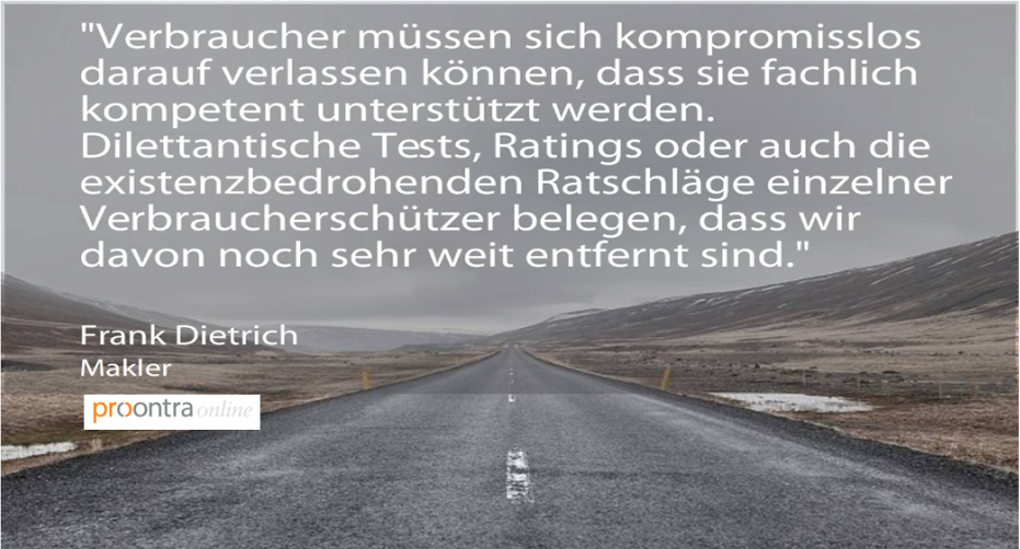 Bitte machen Sie sich Ihr persönliches Bild von mir und meiner gelebten Tätigkeit, die sich von denen der meisten meiner Kollegen grundsätzlich unterscheidet, wenn es um Beratung und Betreuung geht. Viele Vermittler am Markt, haben die Bestimmungen der Verträge, die sie anbieten nie gelesen. Sie „beraten“auf Basis Werbung und Ratings mit dem vermerk „ohne Gewähr“.