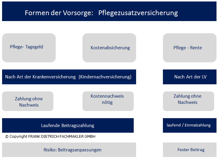Die grundsätzlichen Arten, eine Pflegezusatzversicherung abzuschließen sind folgende: