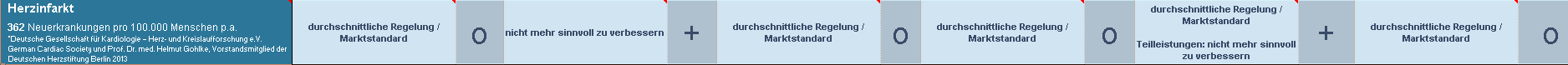 - Angina pectoris. Die Ursachen für dieses Symptom sind nahezu identisch zu denen eines Herzinfarktes, begründen sich auf Durchblutungengpässe eines oder mehrerer Herzkranzgefäße. Wo beginnt der Infarkt und wo endet die Angina pectoris? Immerhin wird bei gut der Hälfte der Anbieter die Restpumpleistung des Herzens zur Bewertung herangezogen.