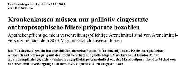 Gerade erst vor einigen Tagen wurde wieder veröffentlicht (Urteil:  B 1 KR 30/15 R), dass Medikamente, nur weil sie wirken, noch lange nicht von der gesetzlichen Kasse übernommen werden müssen. Solidarität mit dem Versicherten oder Lobbyismus mit der Pharmaindustrie, denn es war ein Produkt der natürlich Heilkunde? Beachten Sie das Wording! (Chemie vor Natur?)